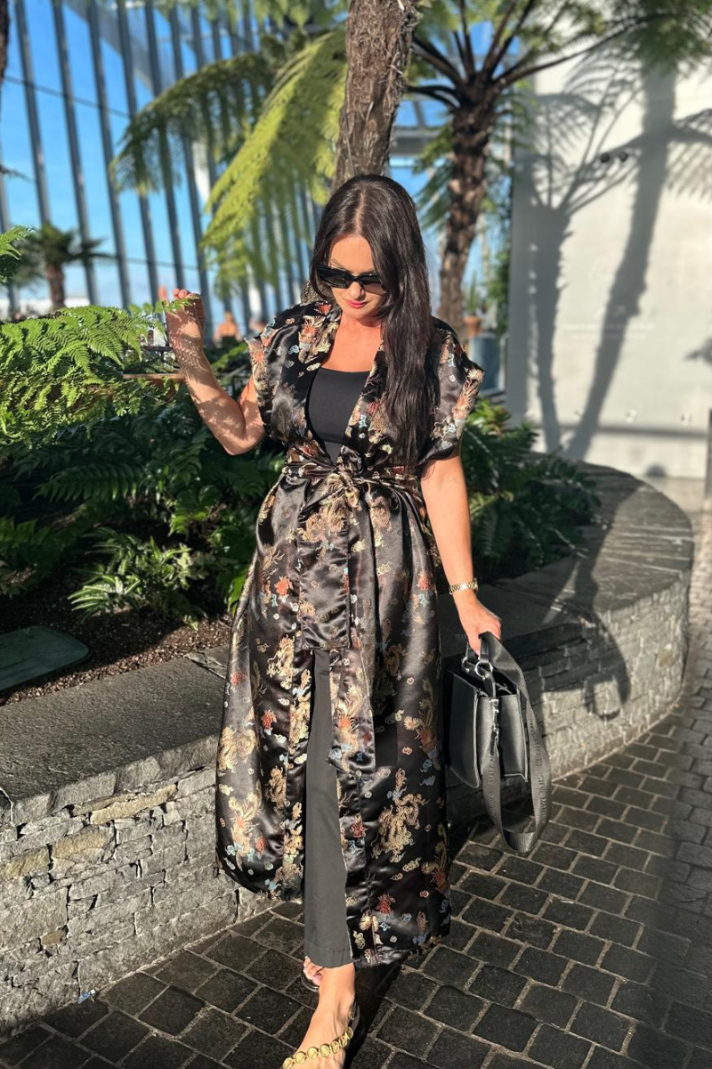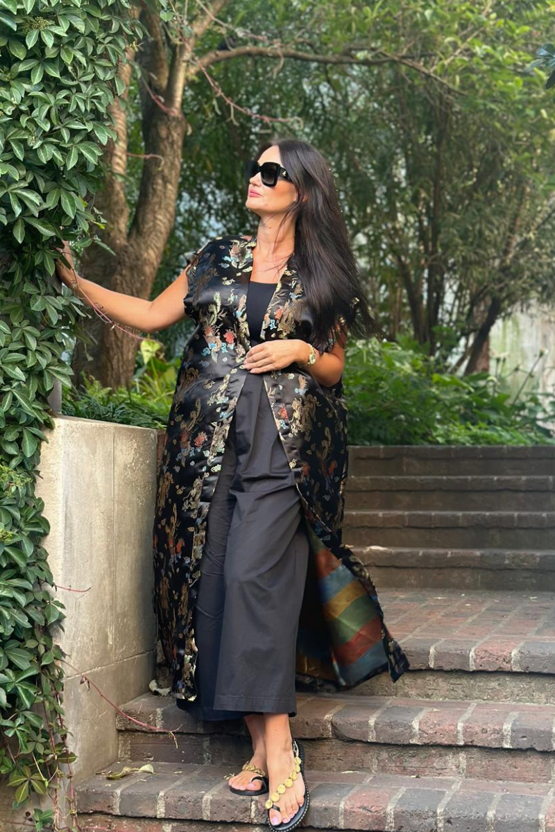 The “Mystic Garden” kimono is a perfect choice for women who appreciate classic style with a touch of avant-garde. It can be worn as a lightweight coat over elegant outfits or as a statement layering piece that adds a unique touch to everyday looks.